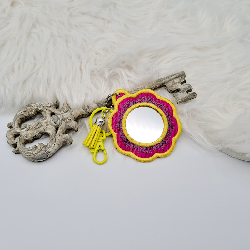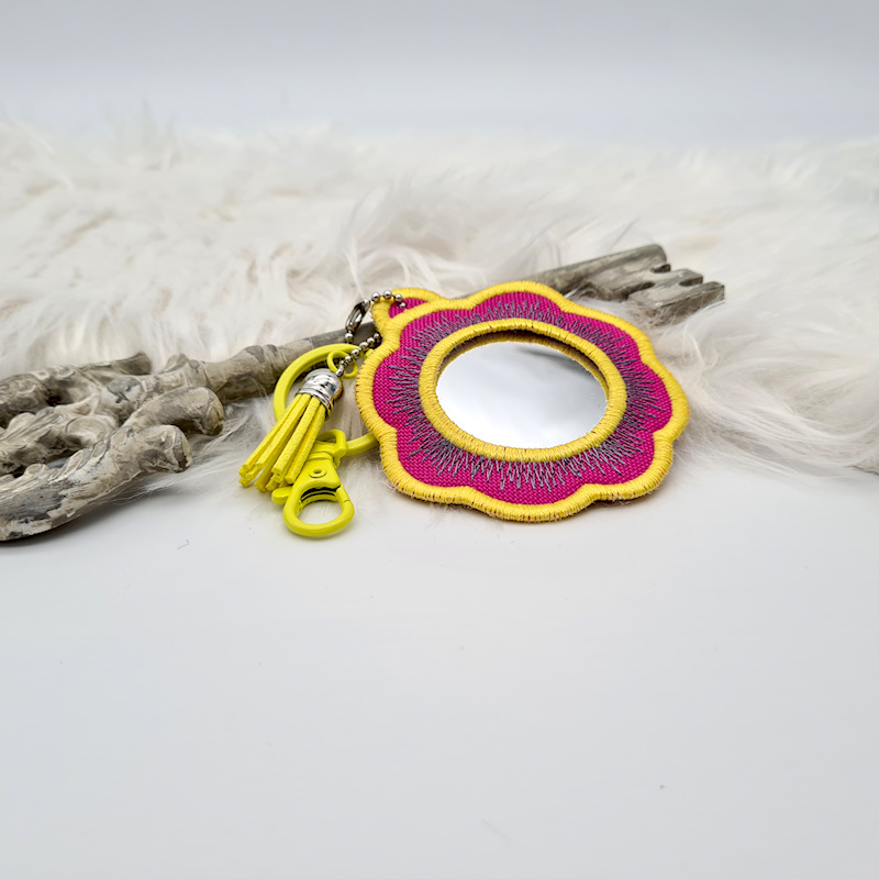 Anhänger mit Spiegel - pink/gelbe Blume