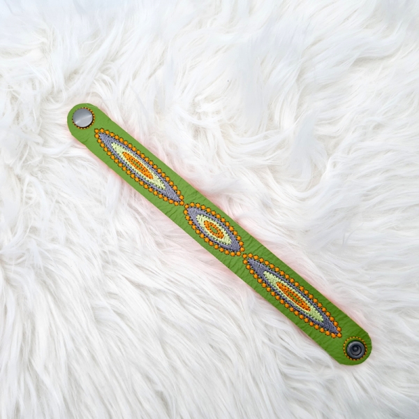 Preview: Armband in grün/orange, Echt-Leder, 23cm lang