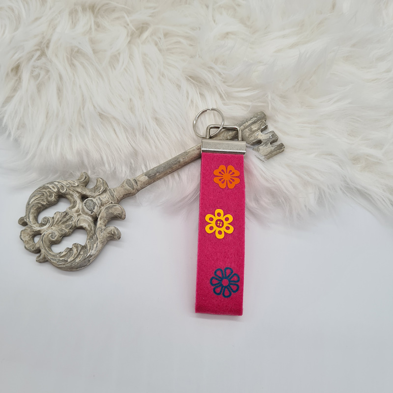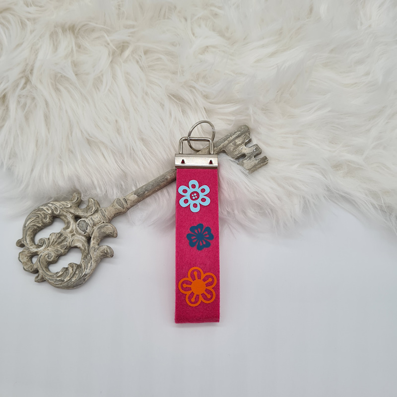Preview: Filzschlüsselanhänger Blumen pink No.1