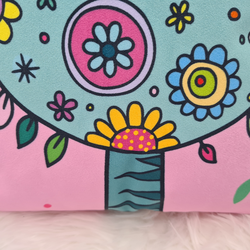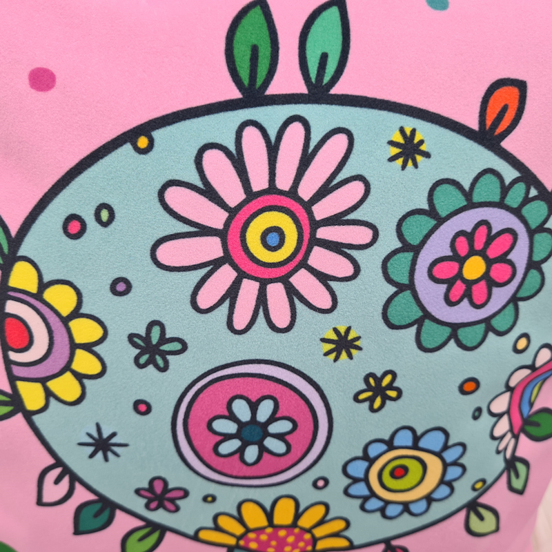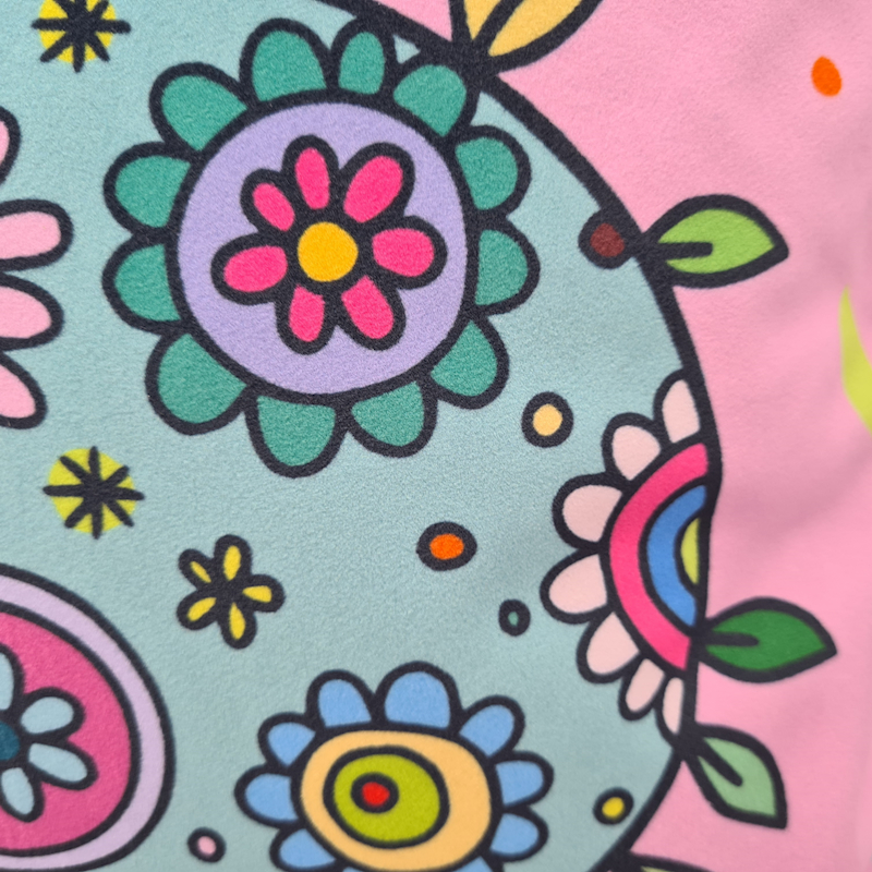 Es ist aus super weichem matten Samt. Die Farben sind schön klar und kräftig.