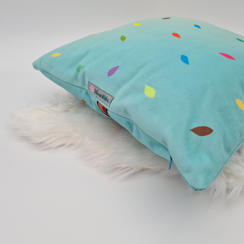 Kissen zum kuscheln, zur Deko zu schade Es ist aus super weichem matten Samt. Die Farben sind schön klar und kräftig.