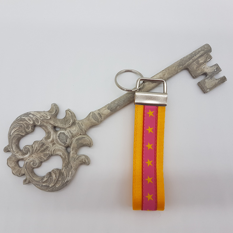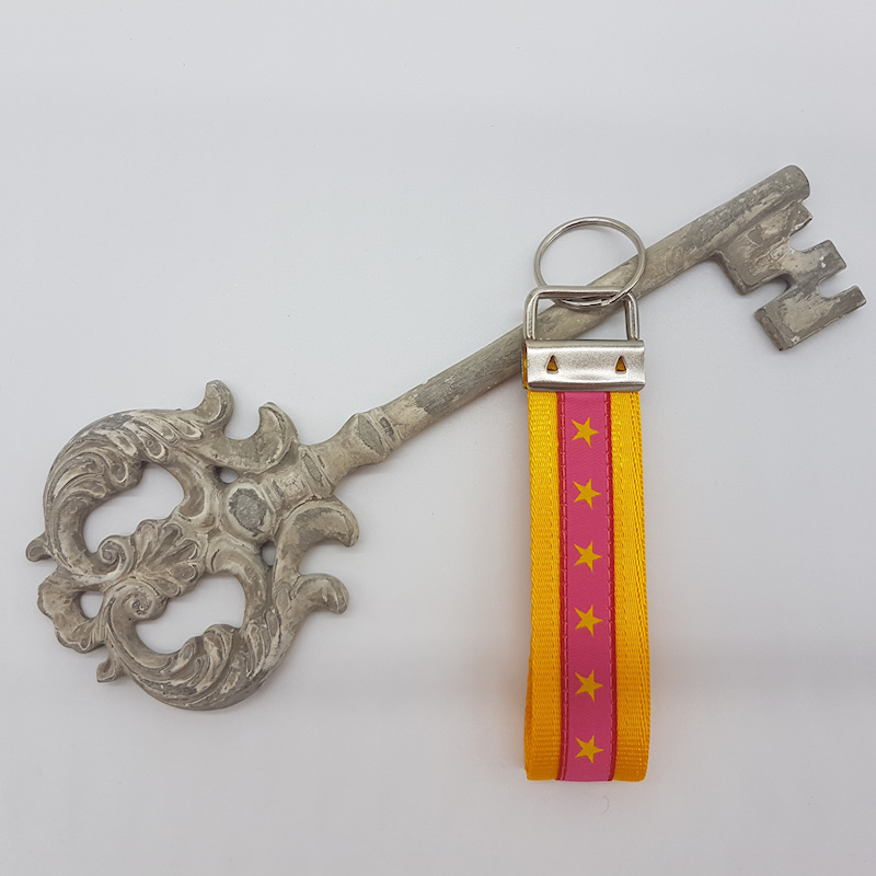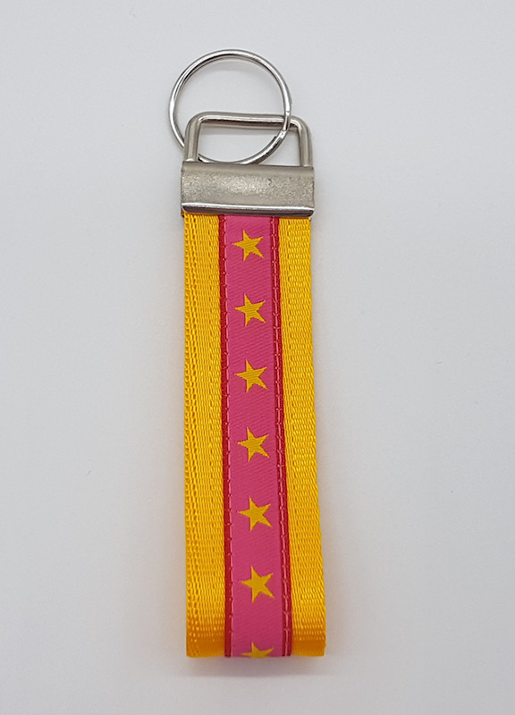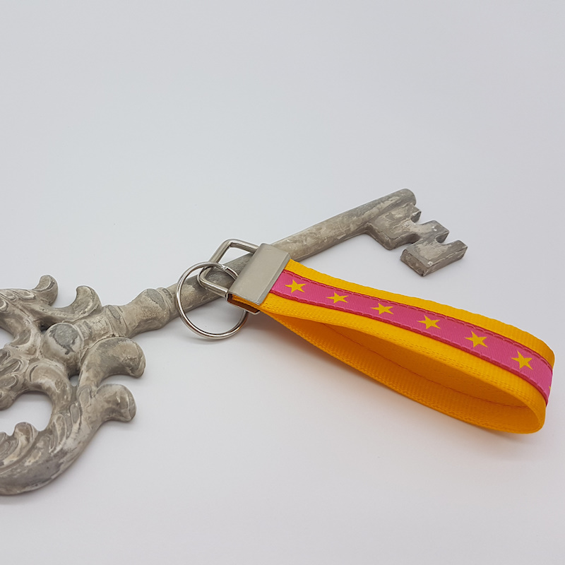 Schlüsselanhänger Gurtband gelb / Sterne pink