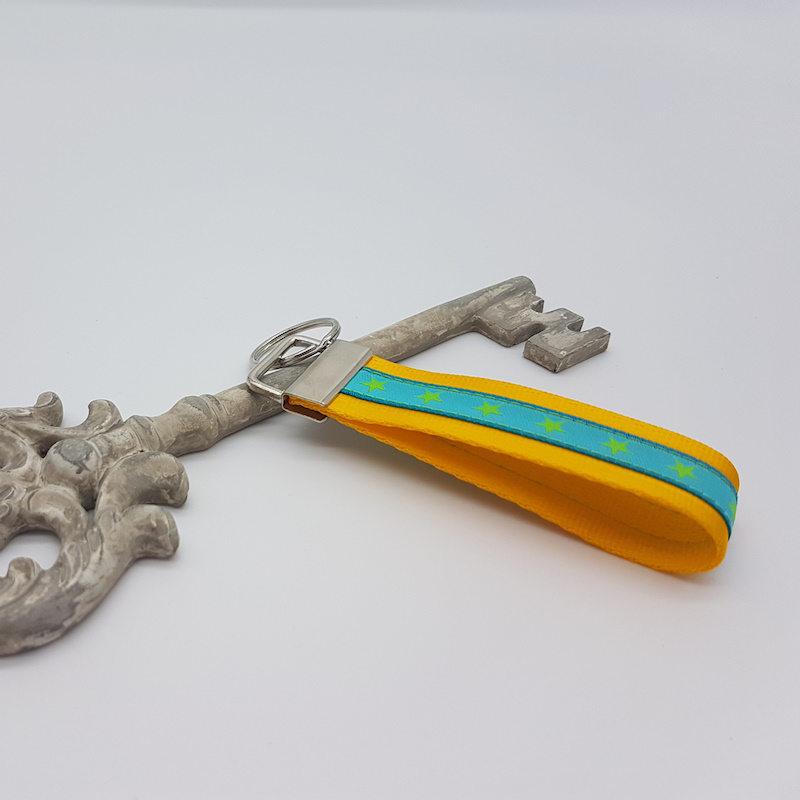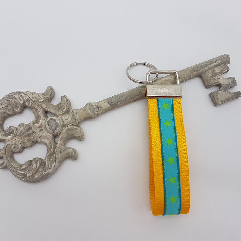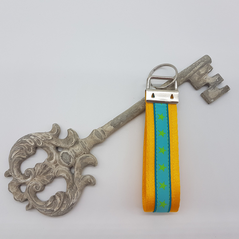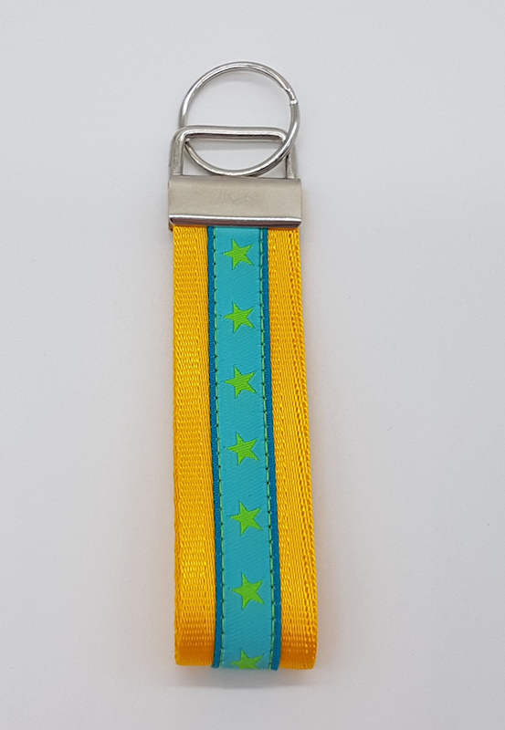 Schlüsselanhänger Gurtband gelb / Sterne türkis