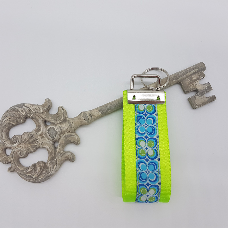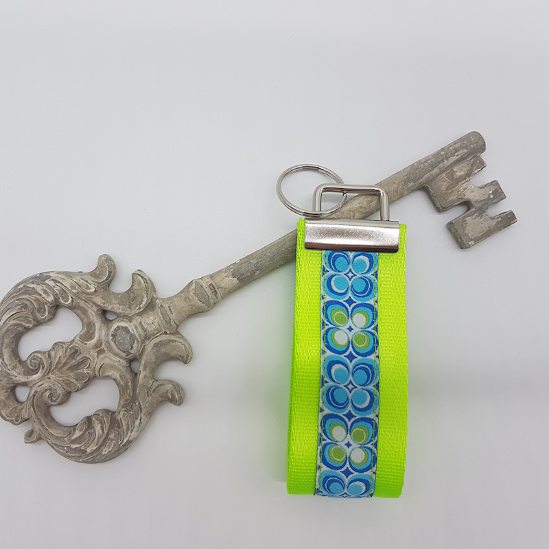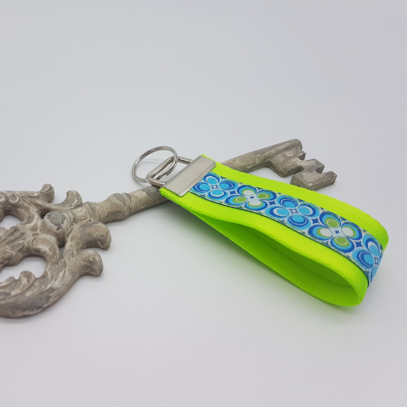 Schlüsselanhänger aus Gurtband neongrün / Retro