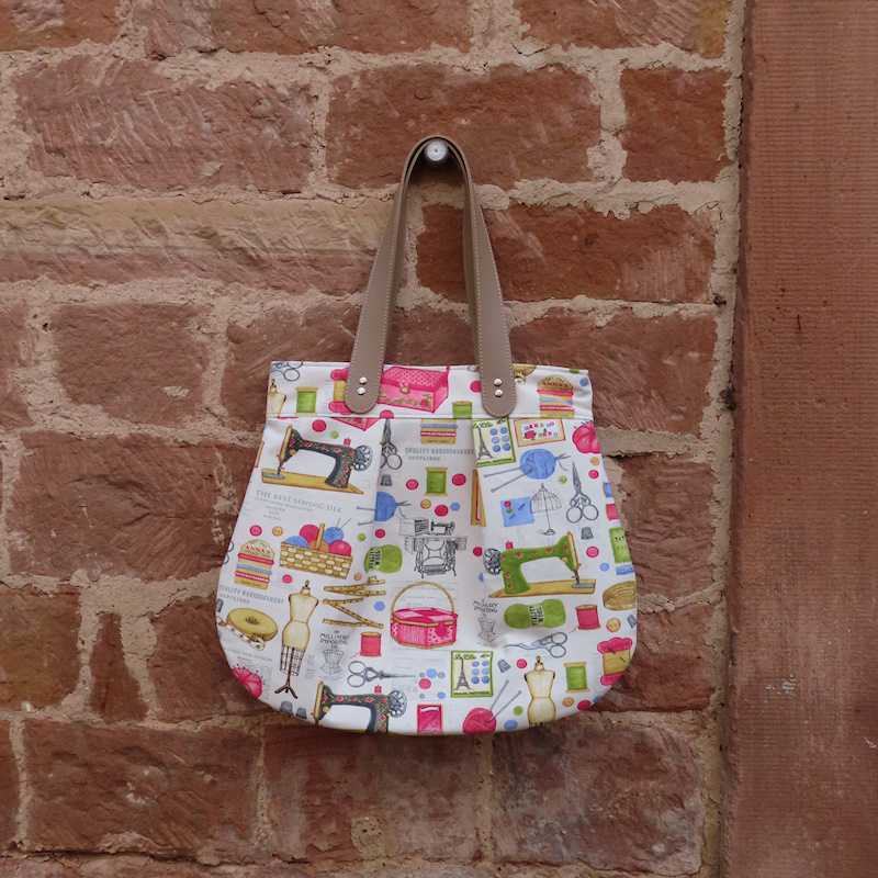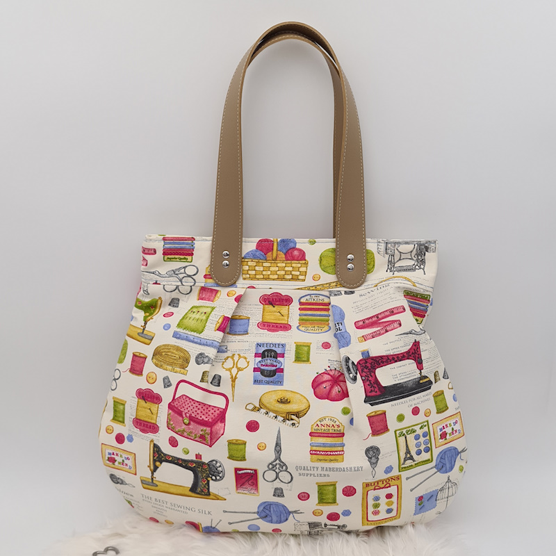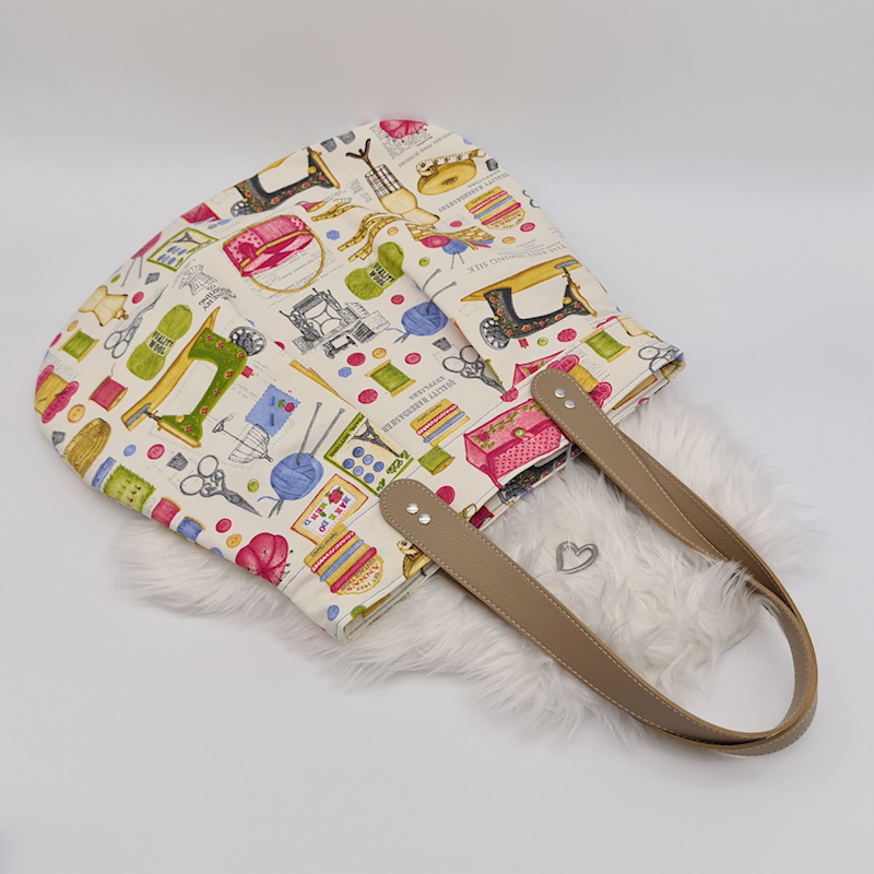 Verwendetes Material: Canvas, Baumwoll-Webware, Vlies, Magnetknopf, Kunstleder Taschengriffe, Nieten