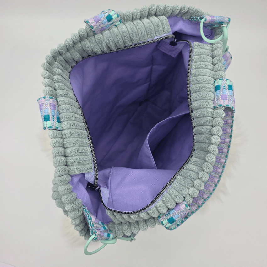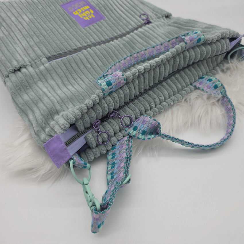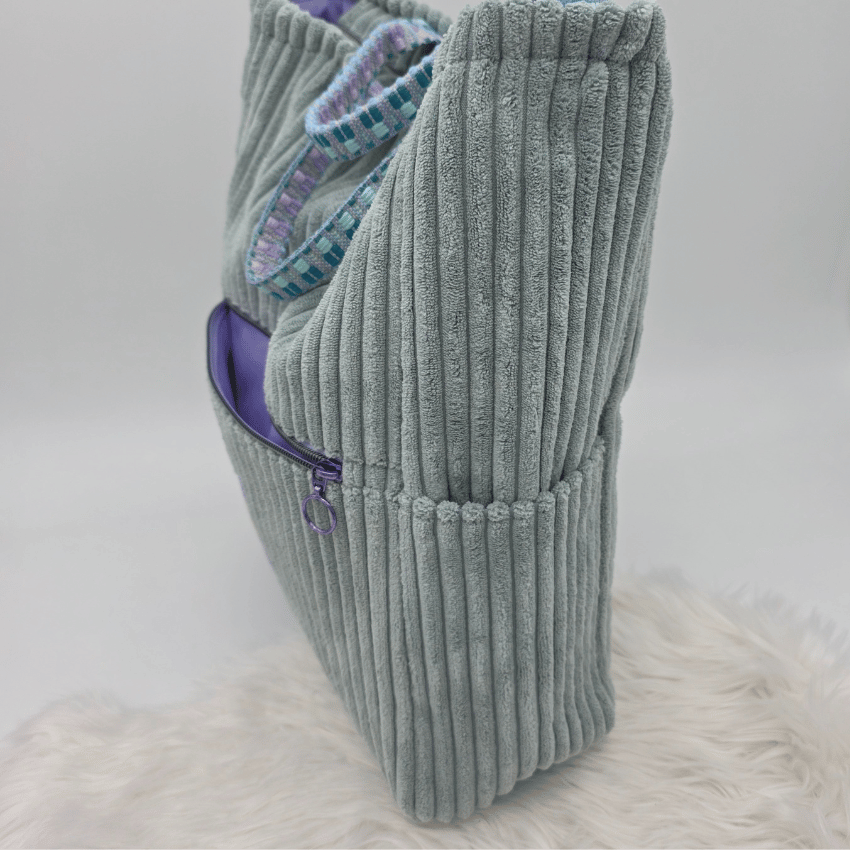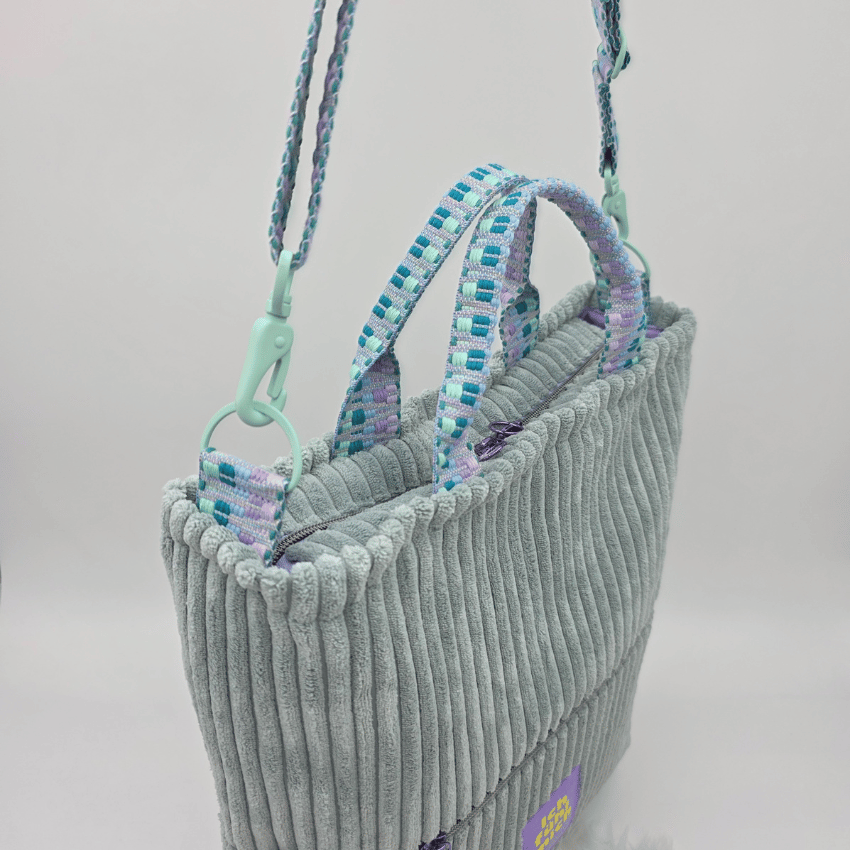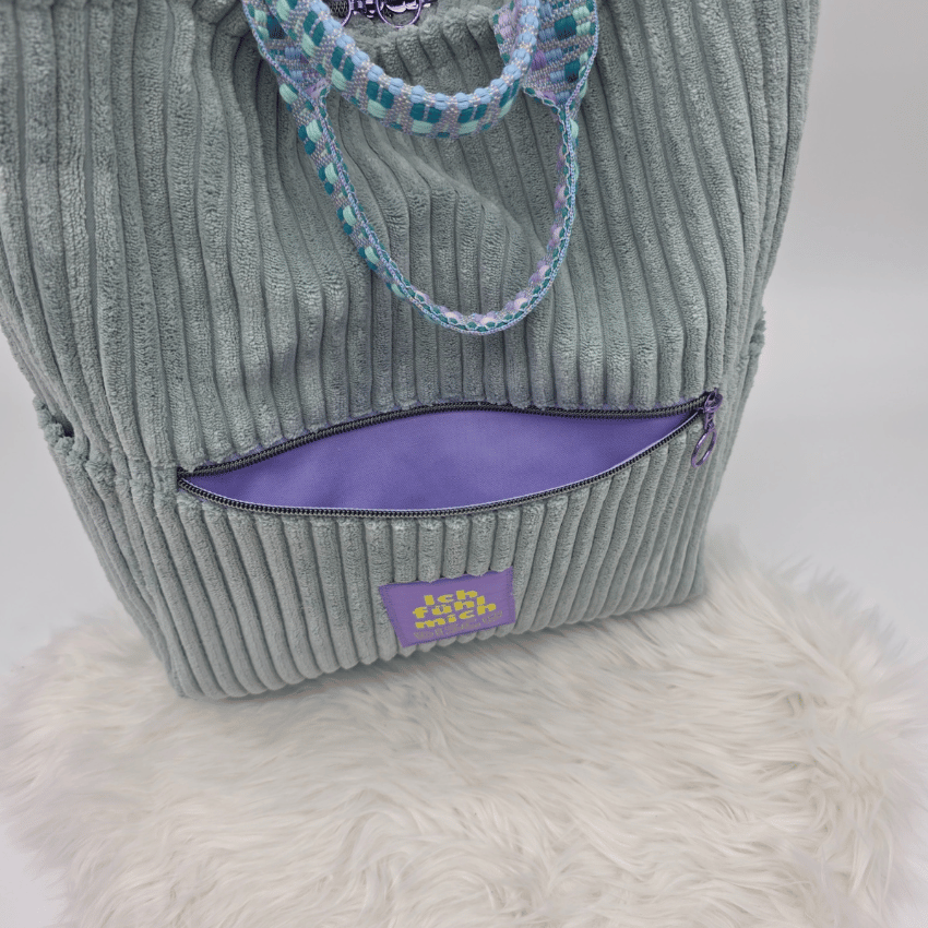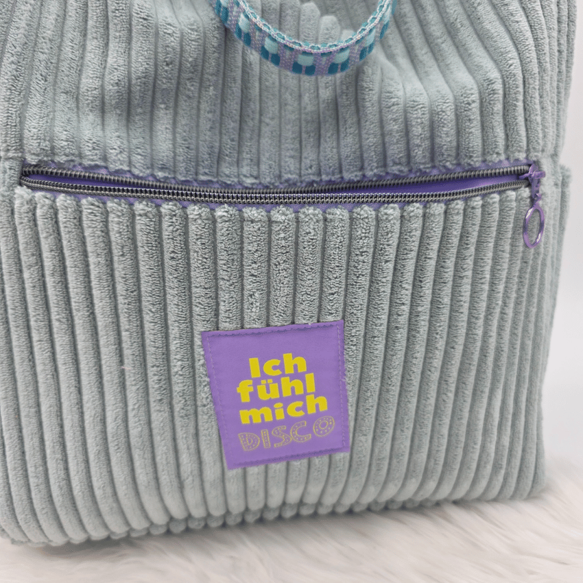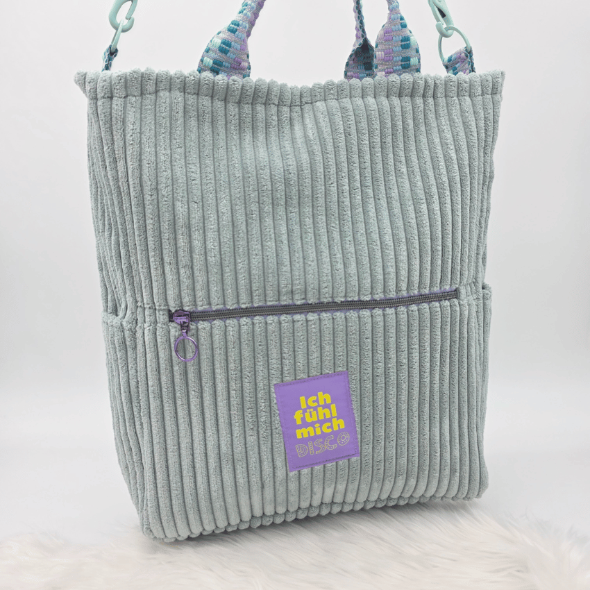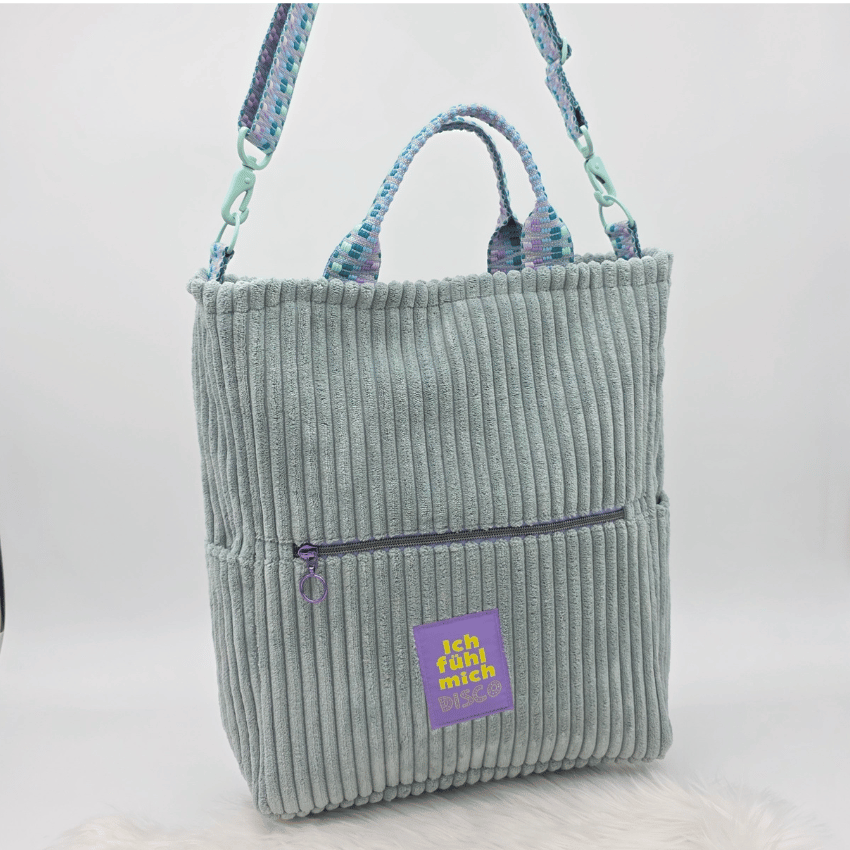 Ich fühl mich Disco – genau dieses Motto verkörpert diese große Tasche aus grauem Breitcord, die sich als wahres Raumwunder entpuppt. Der robuste und zugleich angenehm weiche Stoff macht sie zu einem zuverlässigen Begleiter für Alltag, Arbeit oder Freizeit.