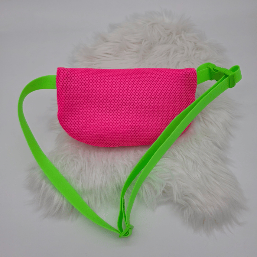 Diese kleine Gürteltasche aus außergewöhnlichem Air-Mesh-Stoff in neon Pink ist ein echter Hingucker. Das Material fühlt sich angenehm weich und zugleich griffig an.Trotz ihrer kompakten Größe bietet sie genügend Platz für Handy, eine kleine Geldbörse und Schlüssel. Das 28mmm breite Gurtband ist PVC beschichtet, fühlt sich gummiartig an. Es ist in der Länge verstellbar und wird mit einer Steckschließe Verschlossen