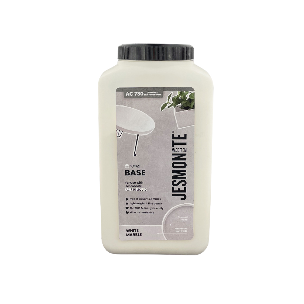 Jesmonite AC730 ist ein umweltfreundliches Mikrozementprodukt. Von der Konsistenz her ähnelt es Beton. Es wird aber wie das Jesmonite AC100 aus zwei Komponenten zusammen gemischt. Hier bekommst du die Farbe White Marble. Das Jesmonite AC730 wurde eher für den Außenbereich entwickelt, daher ist es sehr robust. Selbstverständlich kann man es aber auch für den Innenbereich verwenden. Kerzengefäße so wie Seifenschalen oder Vasen eignen sich mit dem entsprechenden Sealer hervorragend.