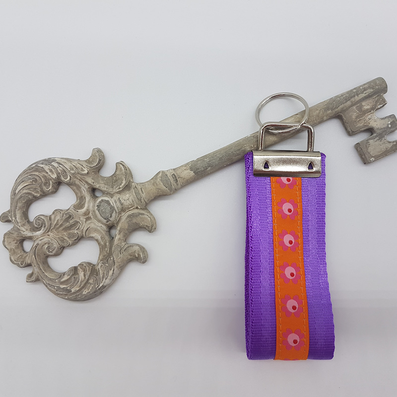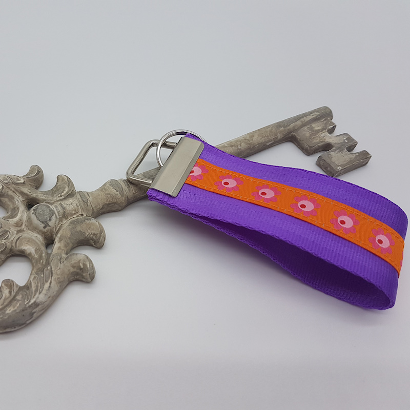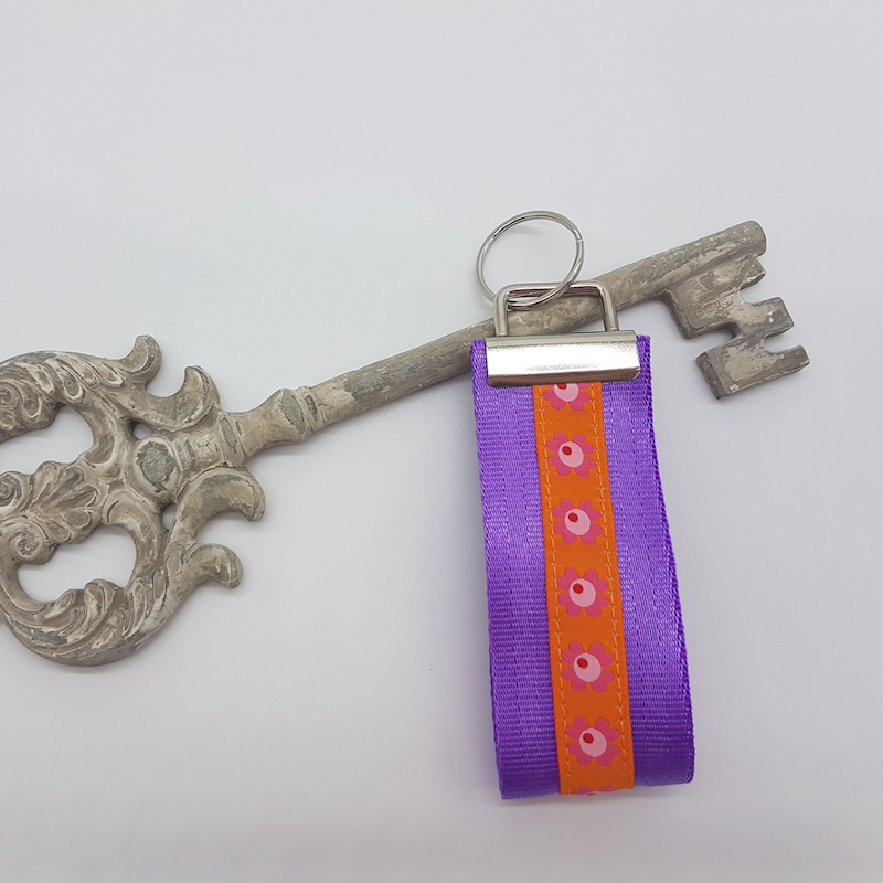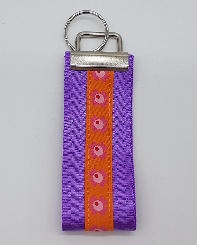 Schlüsselanhänger aus Gurtband lila / Blümchen