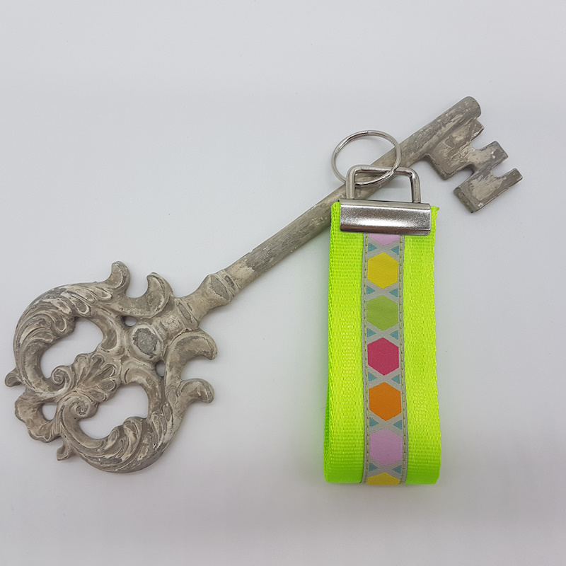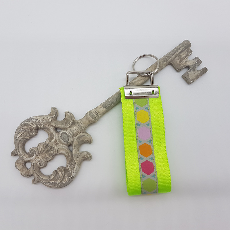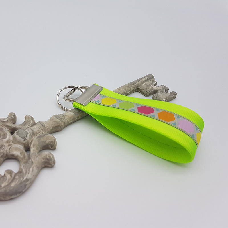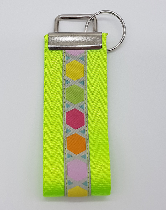 Schlüsselanhänger aus Gurtband neongrün / Hexagon