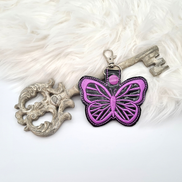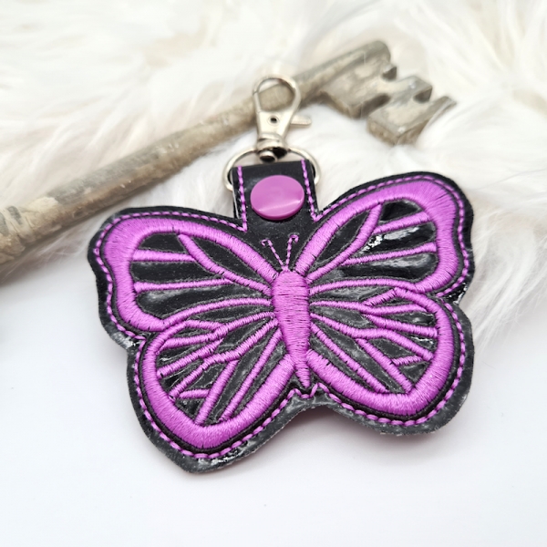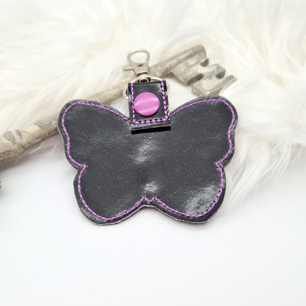 Taschenanhänger / Taschenbaumler Schmetterling schwarz/lila pink